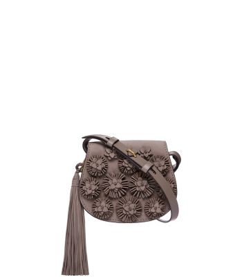 Marrakech meets Chelsea: The Rosette Mini Saddlebag perfectly captures the season’s bold, free-spirited mood. Inspired by traditional Moroccan embellishments, the suede style features flowers that have been cut and applied by hand, djustable strap.